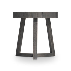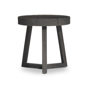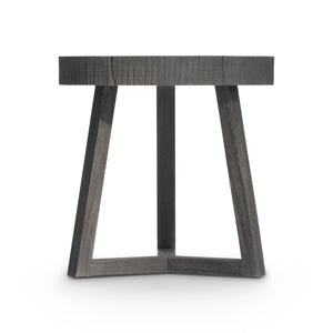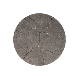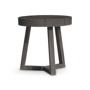Round Sliced Teak Side Table in Smoked Truffle finishStainless Steel Adjustable glides