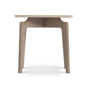 Honed Vasta Stone table top in Warm Shale finish, supported by teak base in Sea Oat finishStainless steel adjustable glidesSpecifications subject to change without notice
