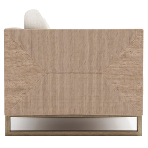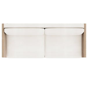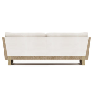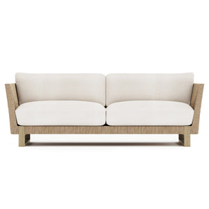 Teak legs that wrap from the front to the backAll-weather weaveTwo seat cushions and two back pillows