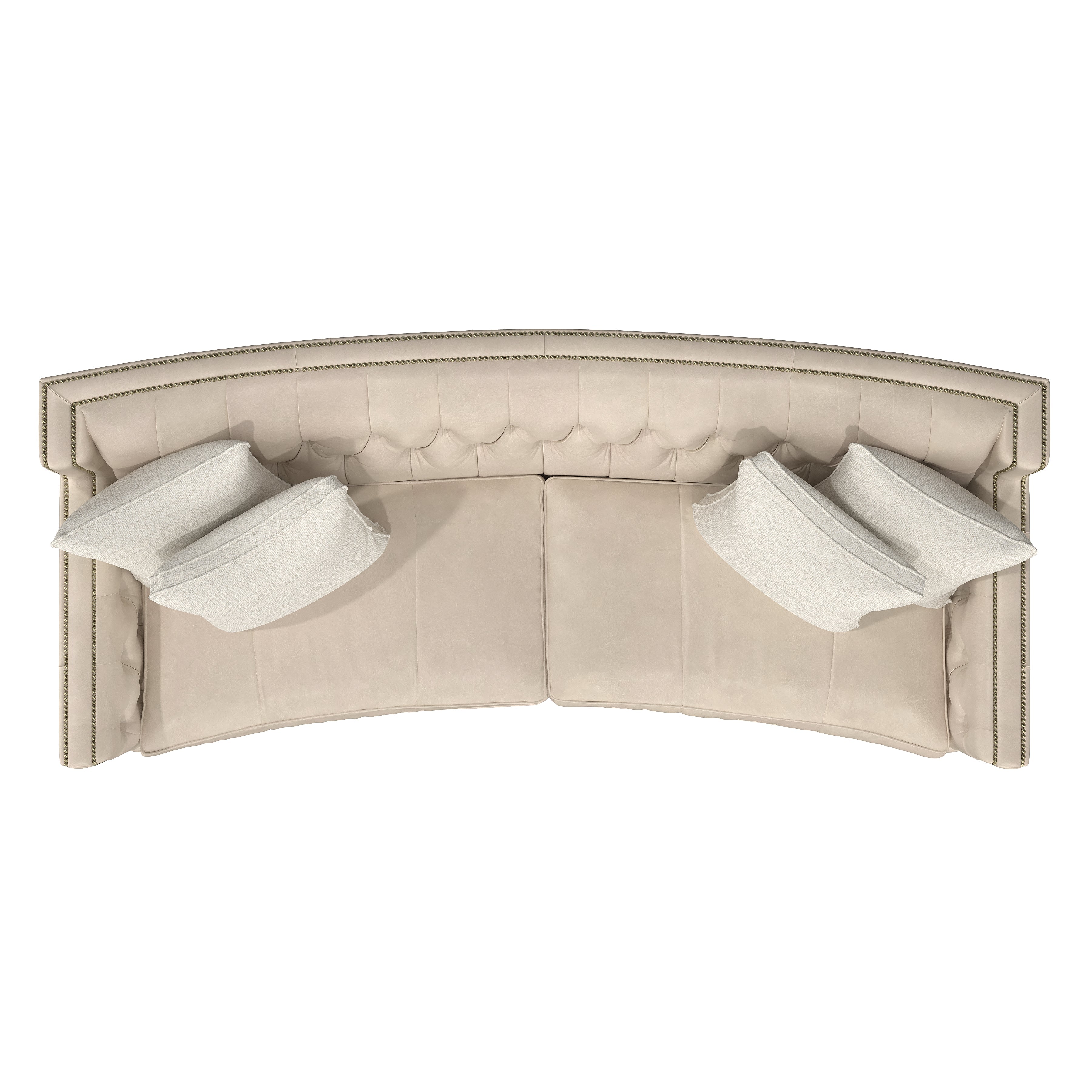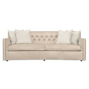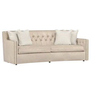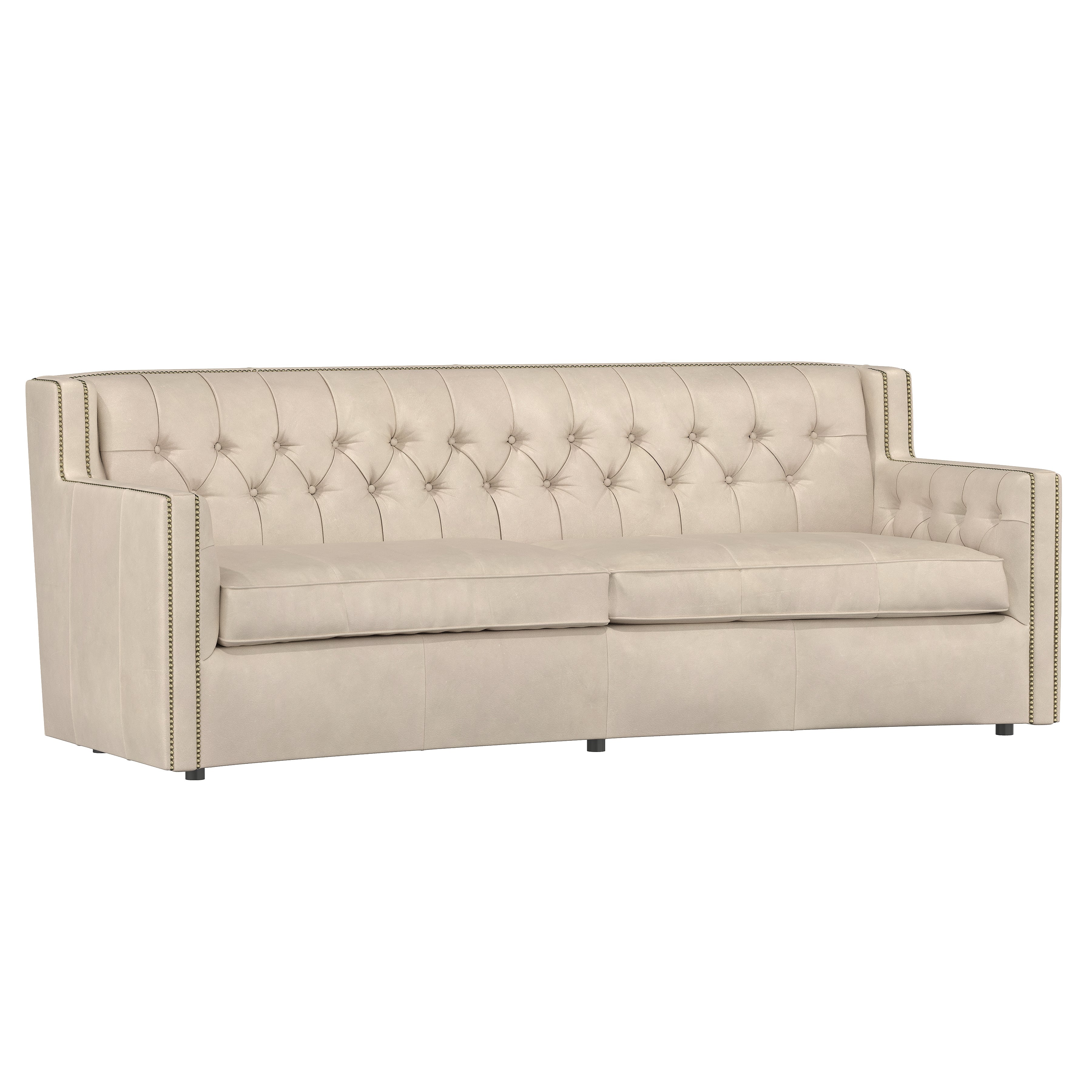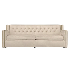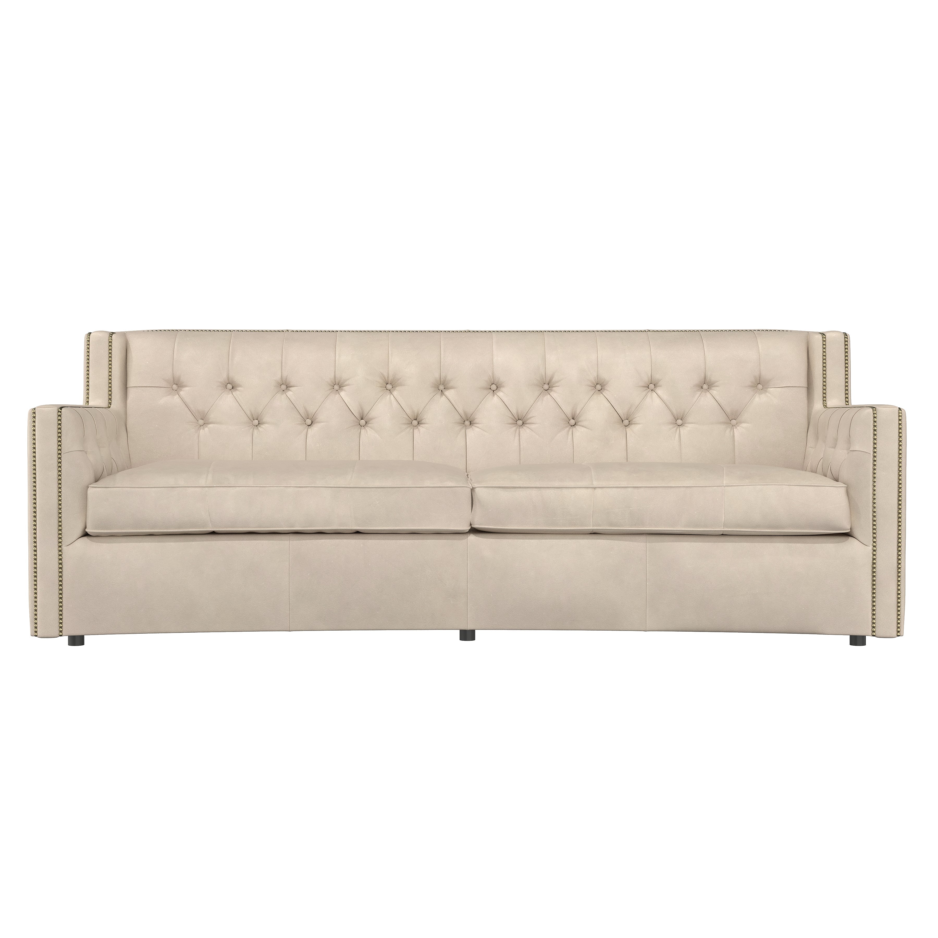 With its subtle crescent shape and sophisticated design details, the Candace leather sofa offers luxurious comfort with elegant style. Classic elements like nailhead trim and button tufting create a refined, polished look, while sleek lines and track arms add contemporary appeal. The perfect mixture of traditional and modern style.