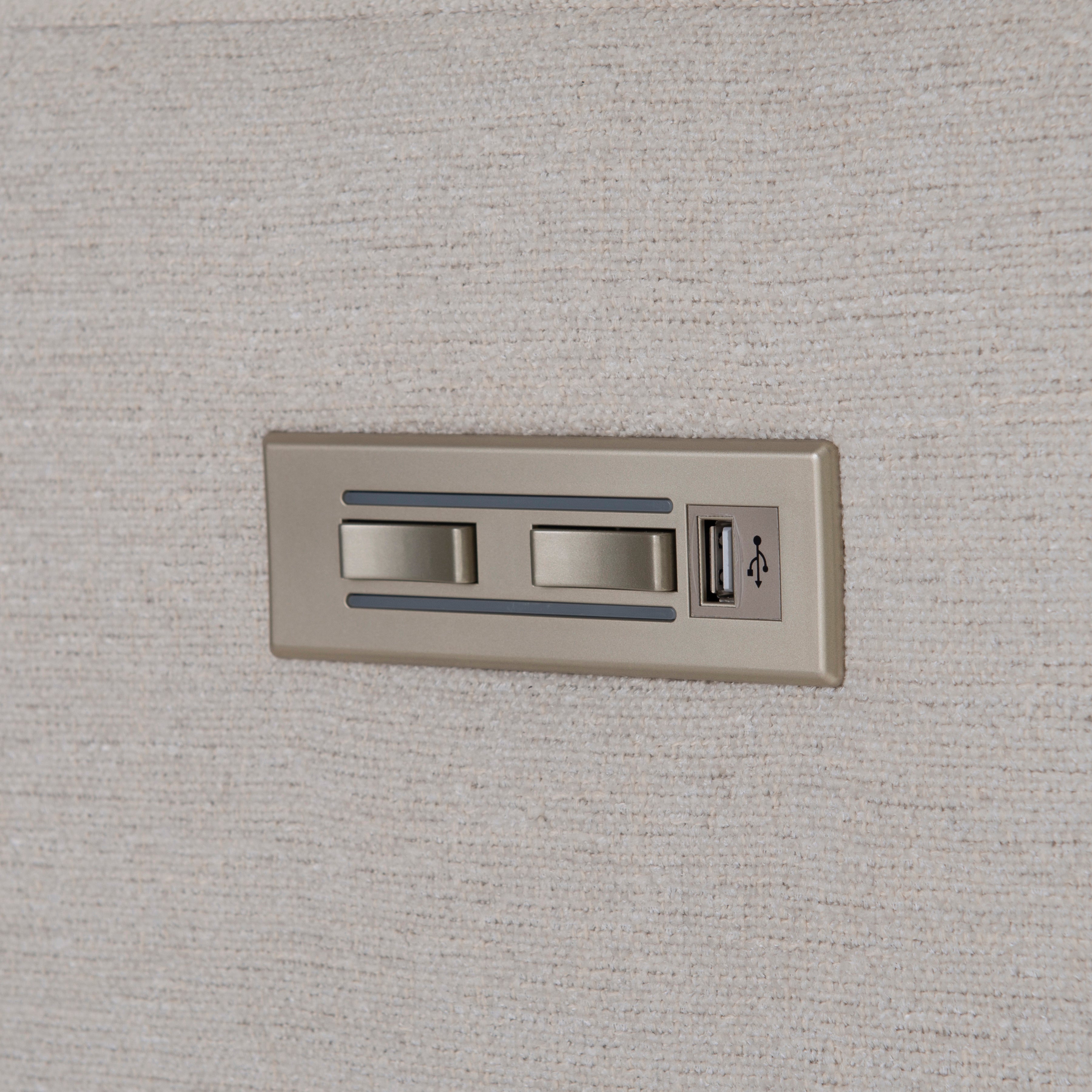 Exposed wood legs.Attached bustle back pillow style.Power Footrest.Power Headrest.USB Port.