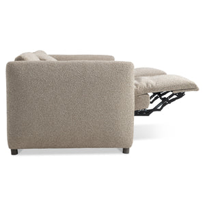 Modern styleShelter armTight backPower footrests & pop-up headrestsWall-away reclineStationary center seatThrow pillows includedWood feet in Smoked Truffle finish onlySpecifications subject to change without notice