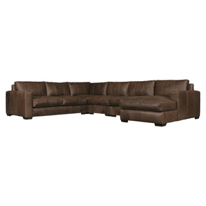 Wide track arms and tapered block feetLuxurious top-grain leatherPlush cushions and fiber back pillows