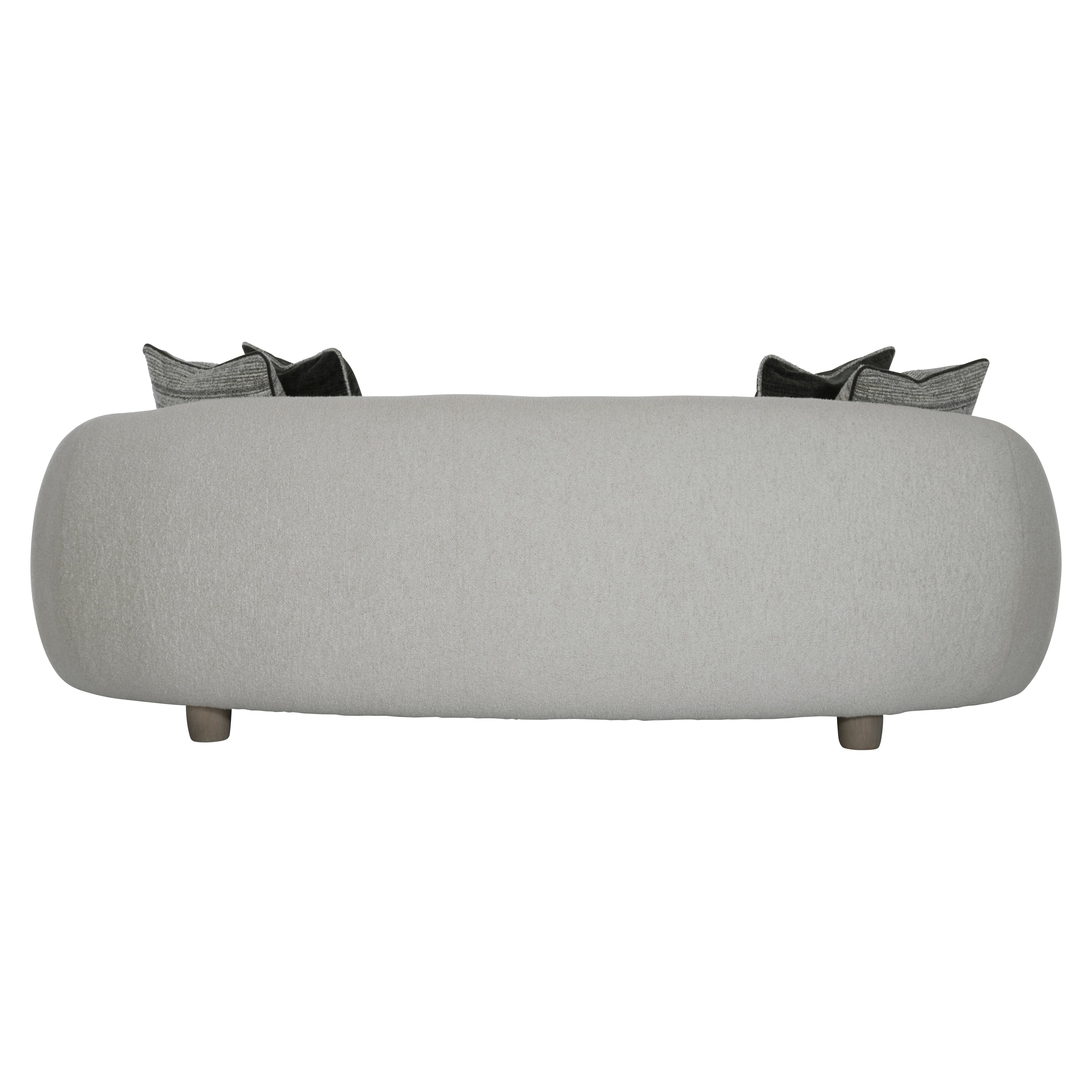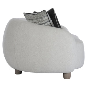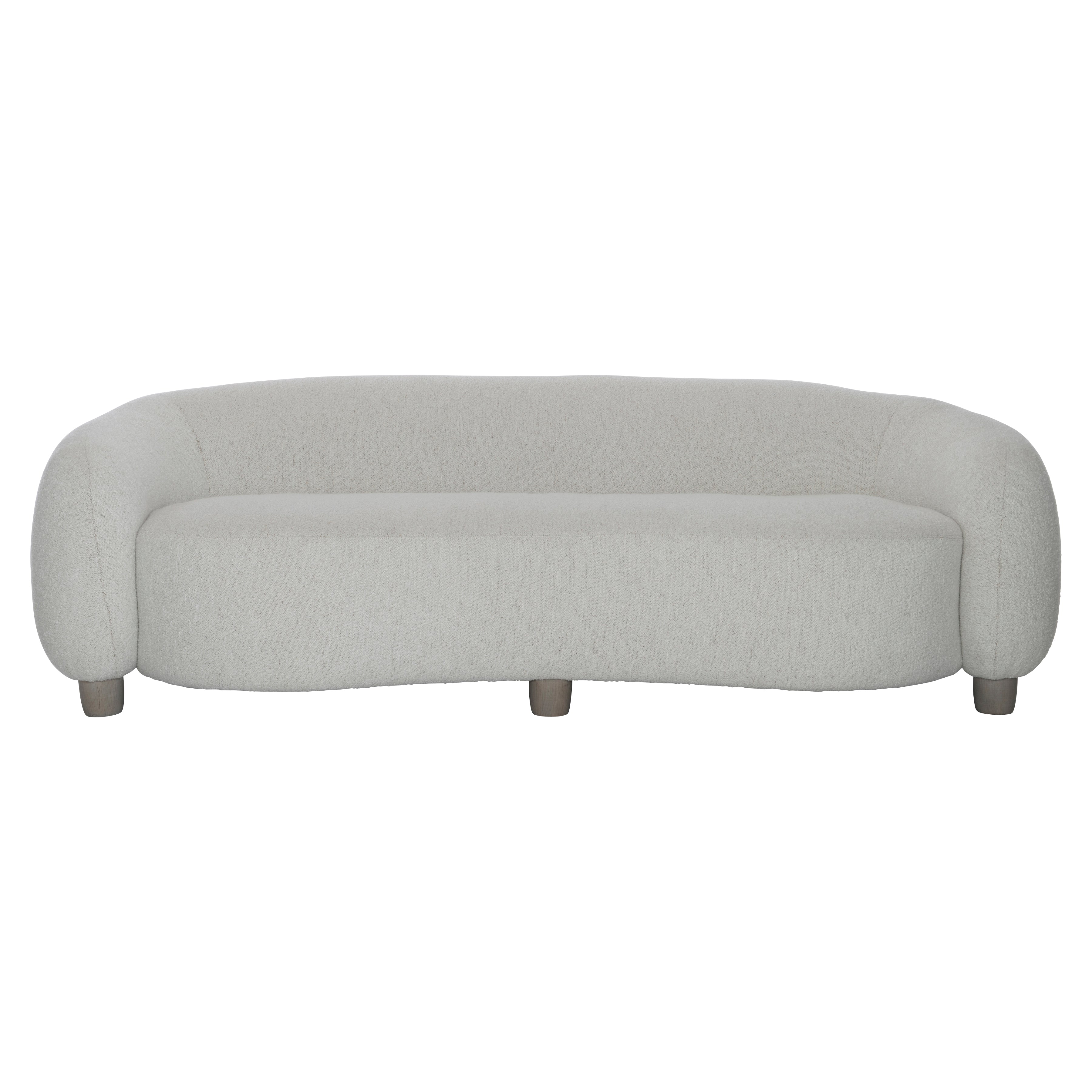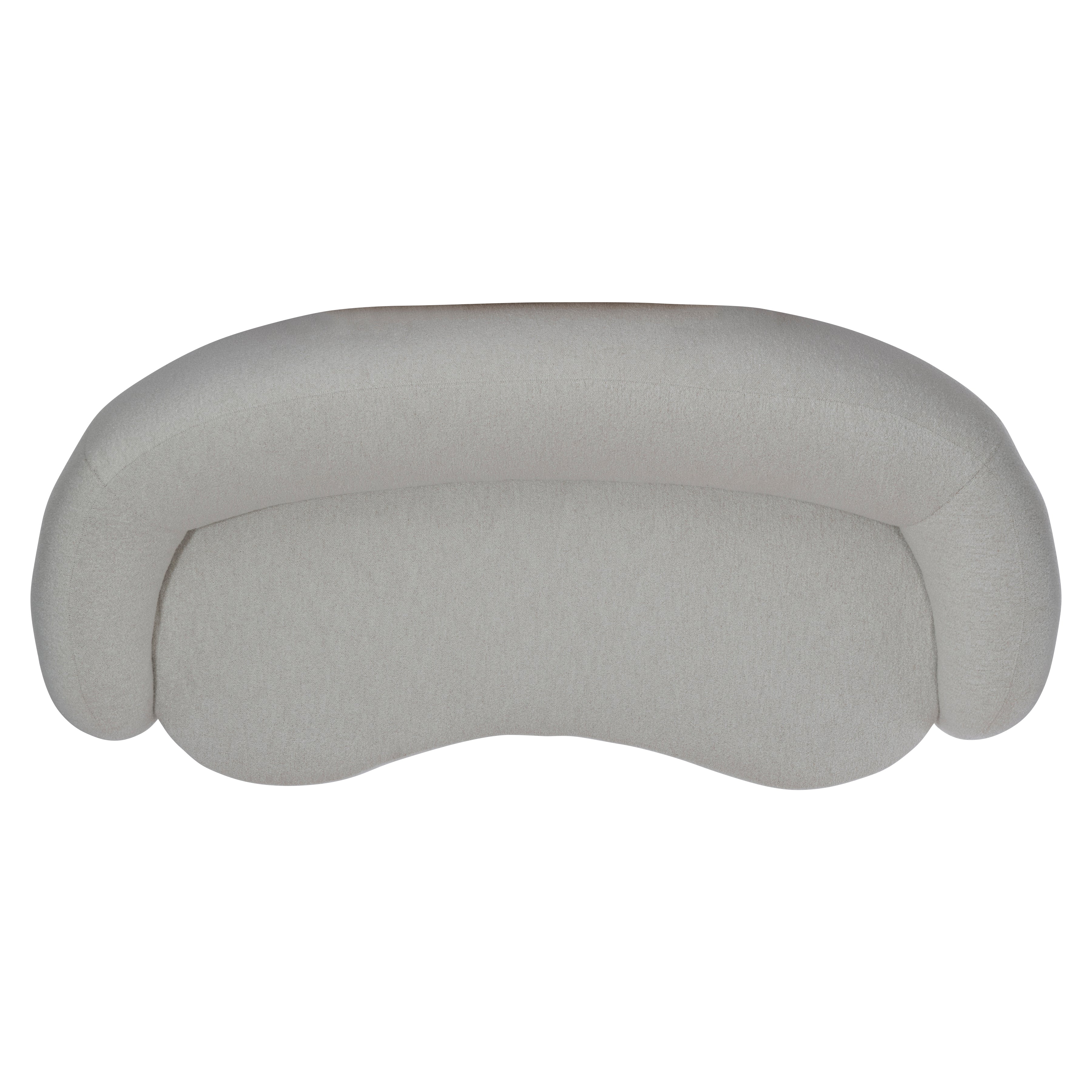 Sleekly curved shapeTightly upholstered back over base with rounded proportionsFive solid wood legs