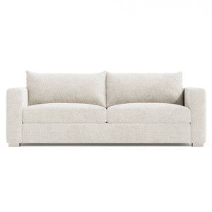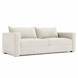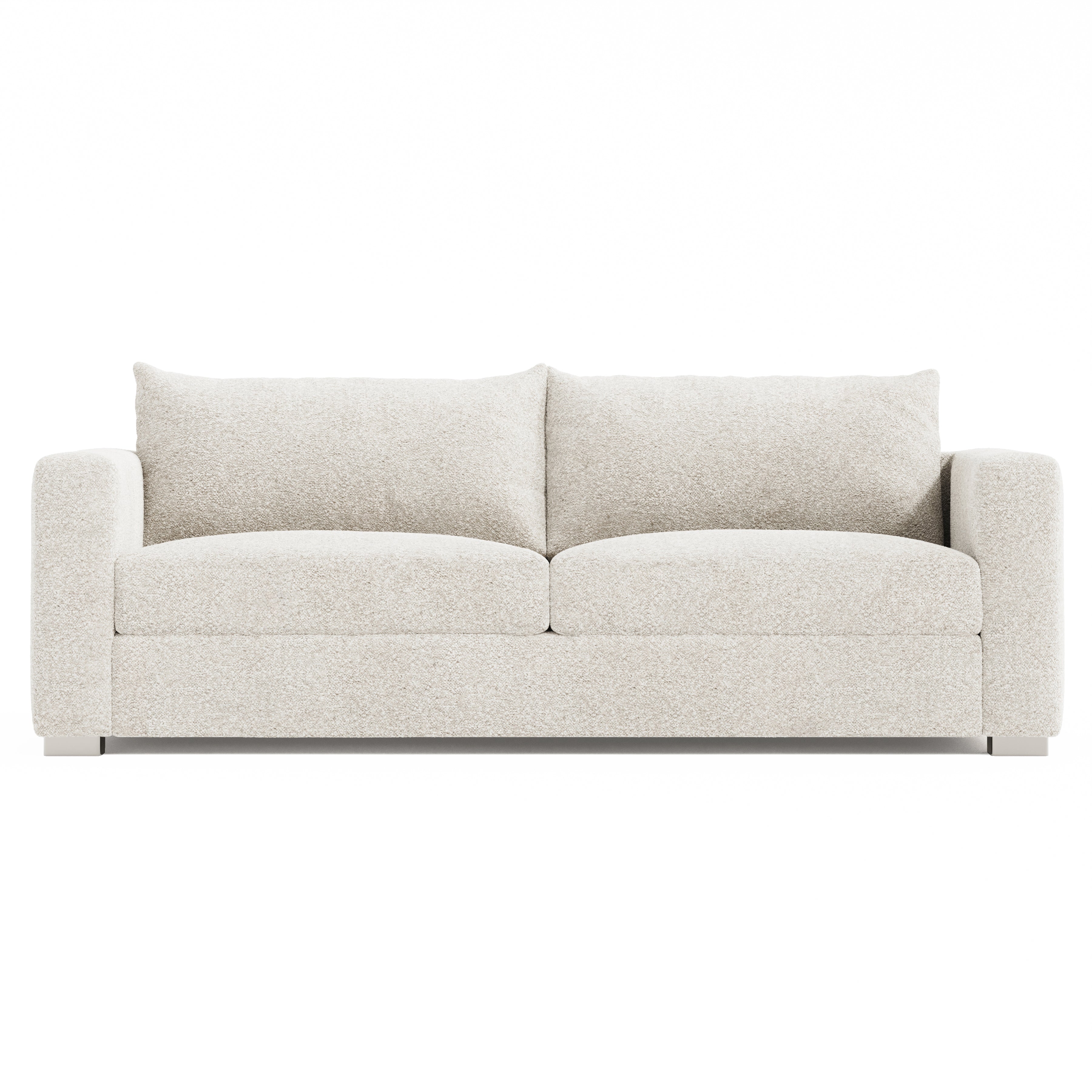 Oversized track arms and low profile.Luxe feather down seat cushionsBrushed stainless steel feet