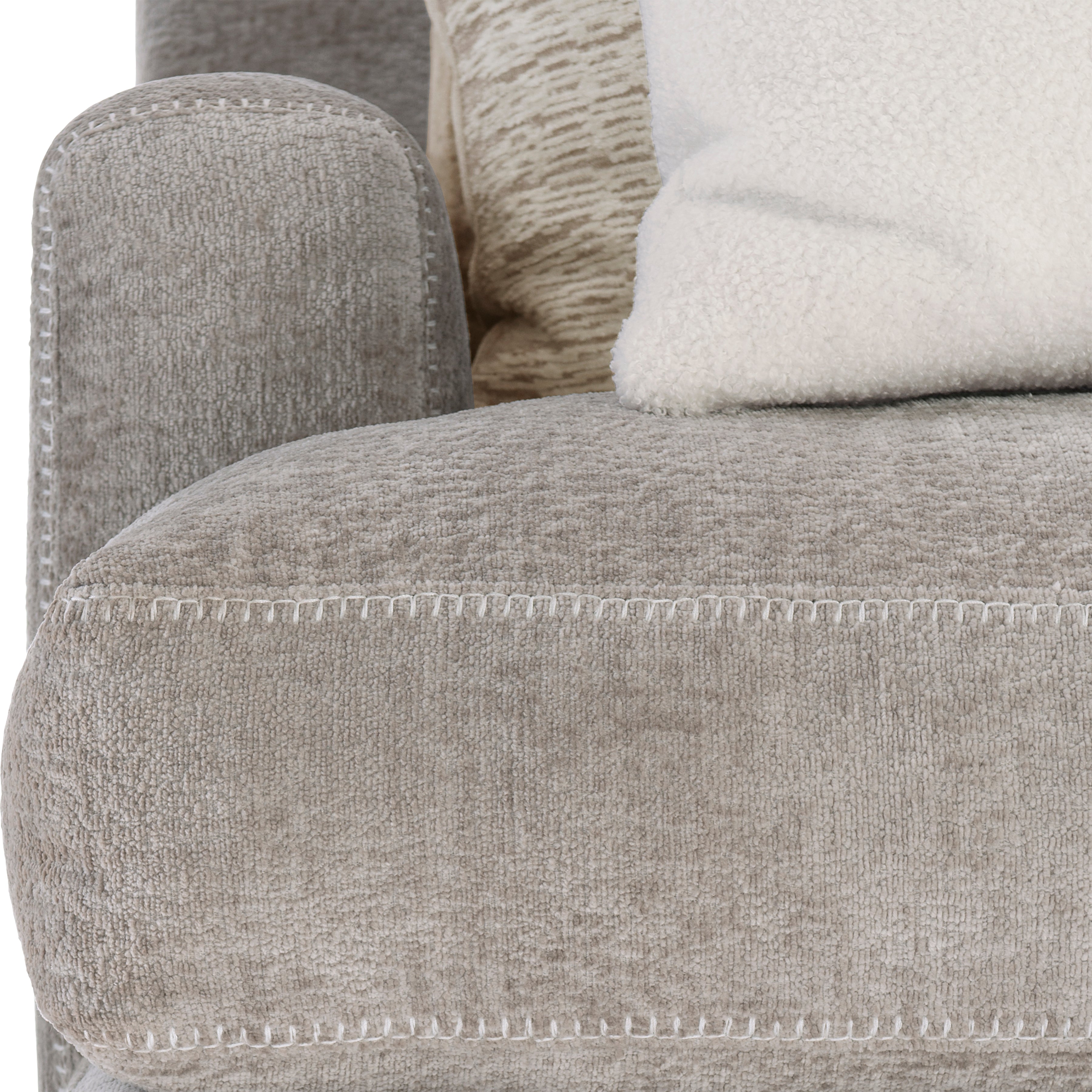Two Fiber back pillows-box edge weltless with special contrast stitching.Two Plush Feather Down seat cushions.Sinuous spring.Two Blendown throw pillows-knife edge weltless-21"x21"Two Blendown throw pillows-knife edge weltless-20"x20"