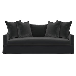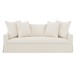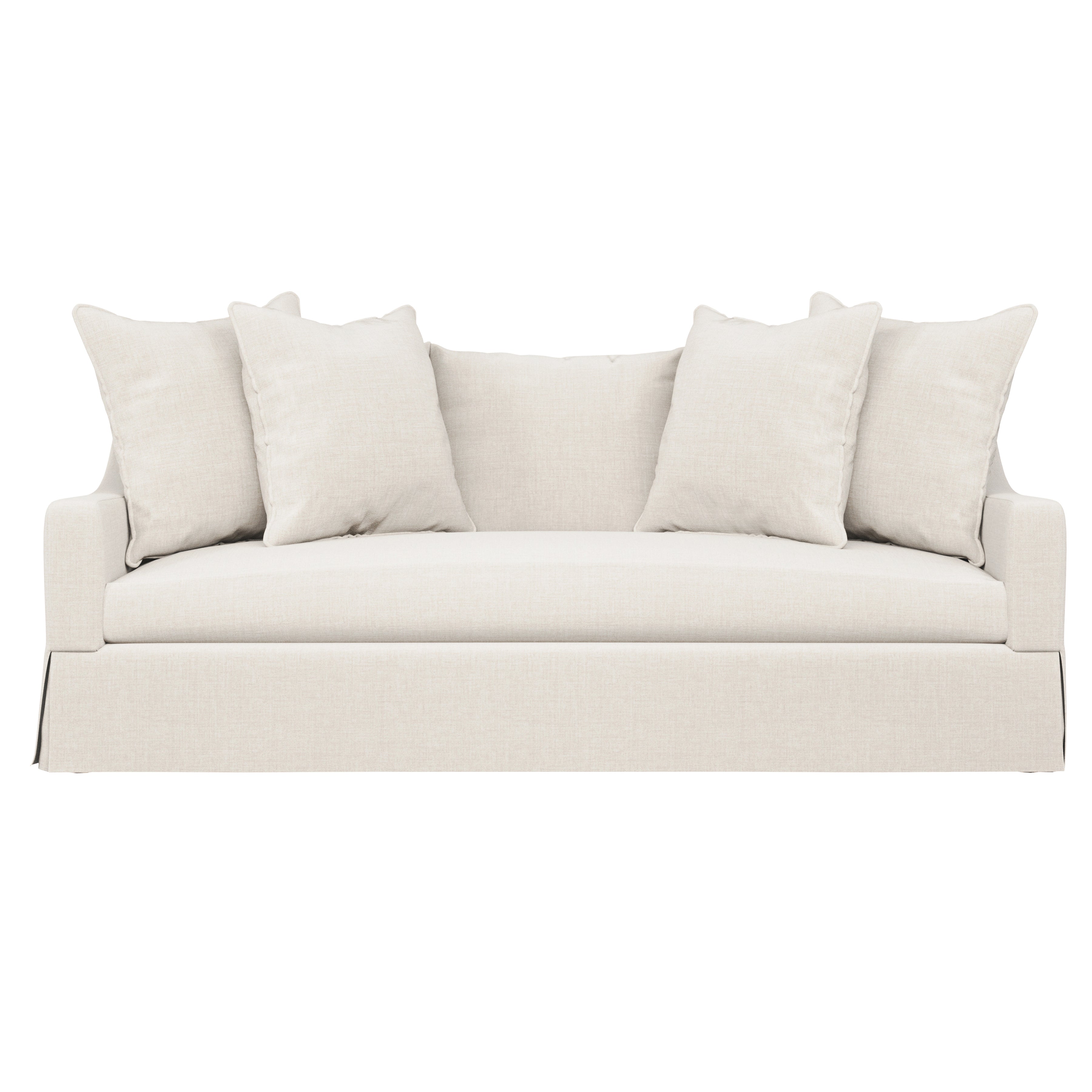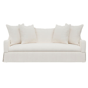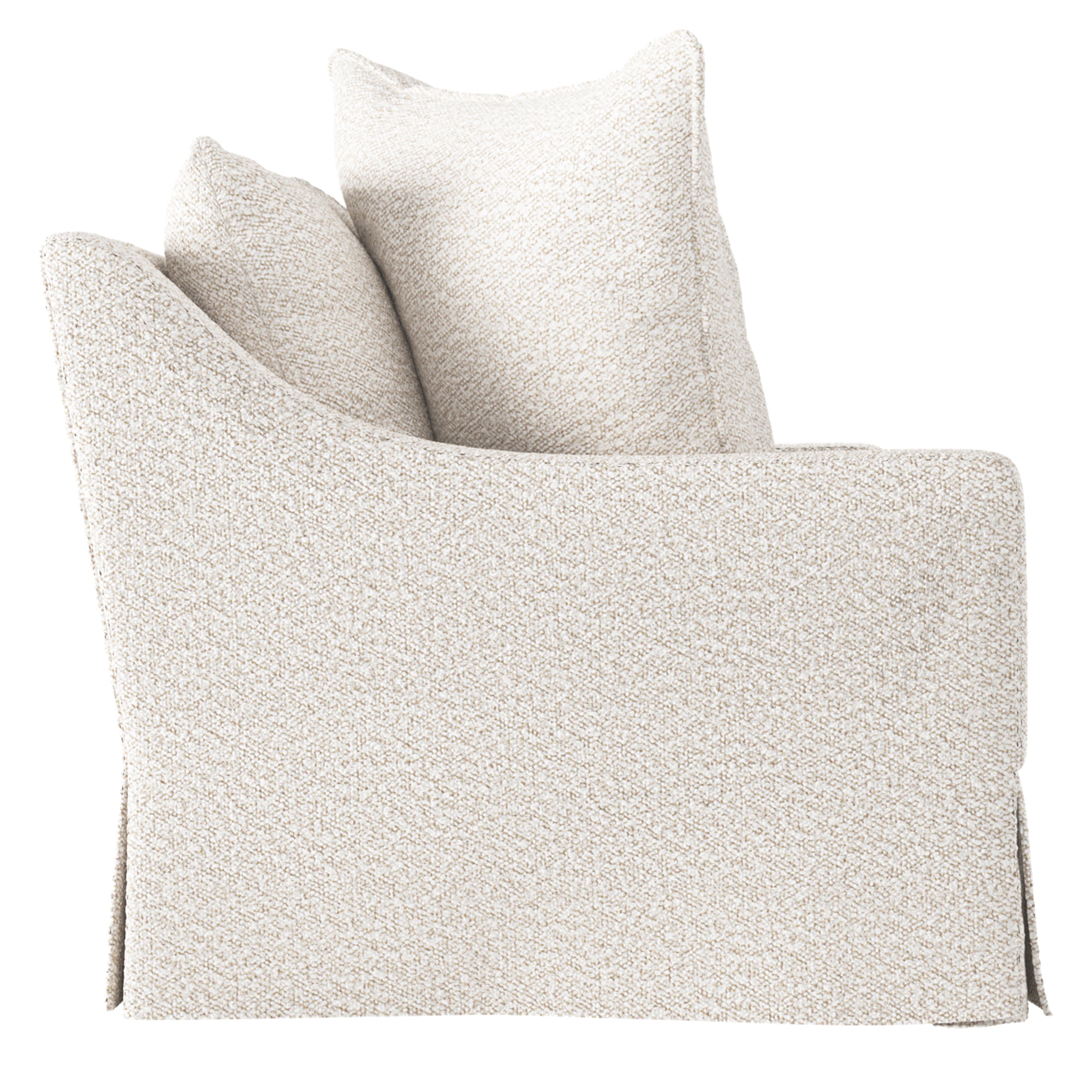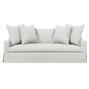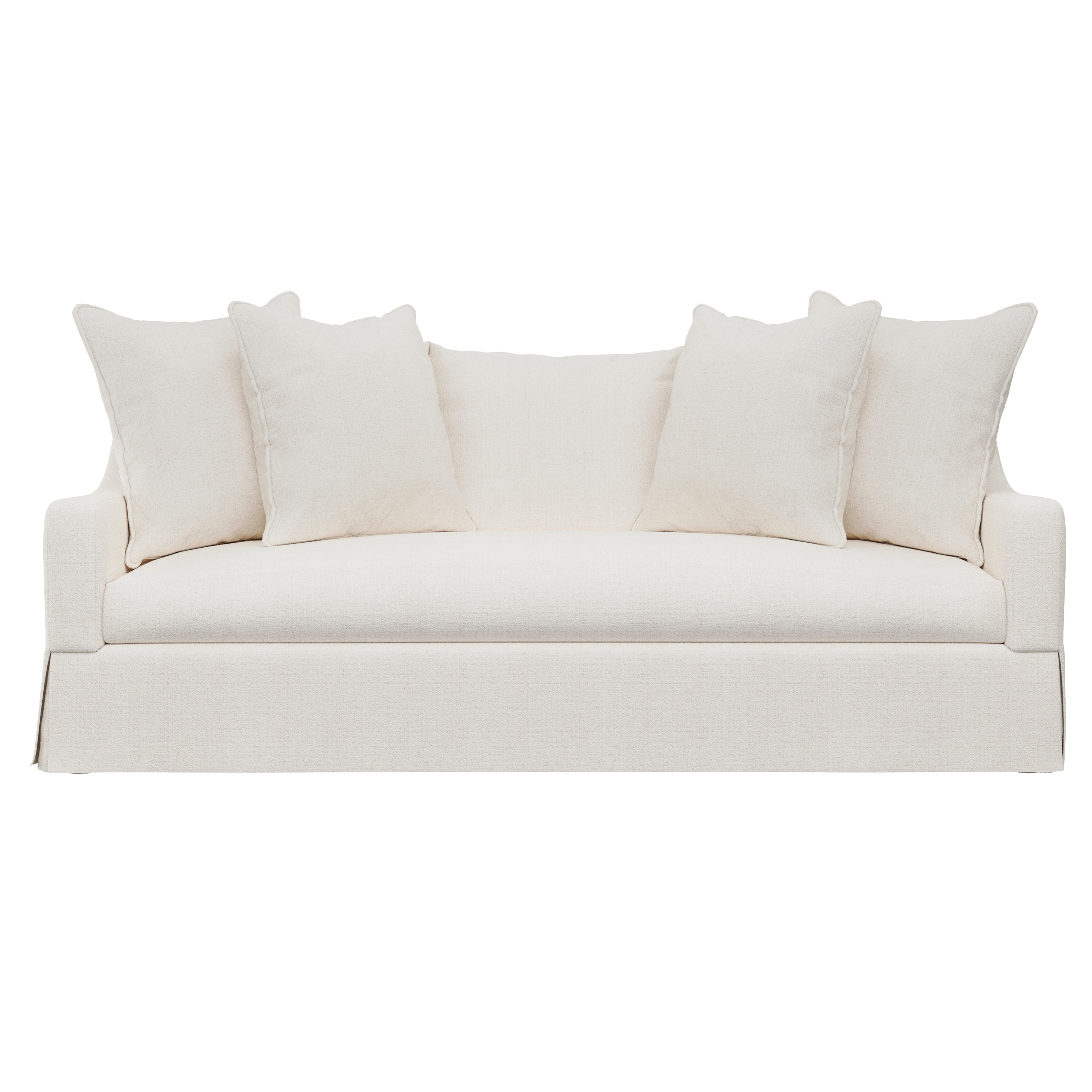Combining natural fabrics, relaxed tailoring and sumptuous cushioning, the Grace sofa offers a luxurious seating experience. A luxe feather down cushion and loose fiber back pillows provide unmatched comfort. Sloped square arms cut a graceful profile with contemporary appeal. A key feature of this tasteful and appealing sofa is the skirt, which helps to soften an interior.