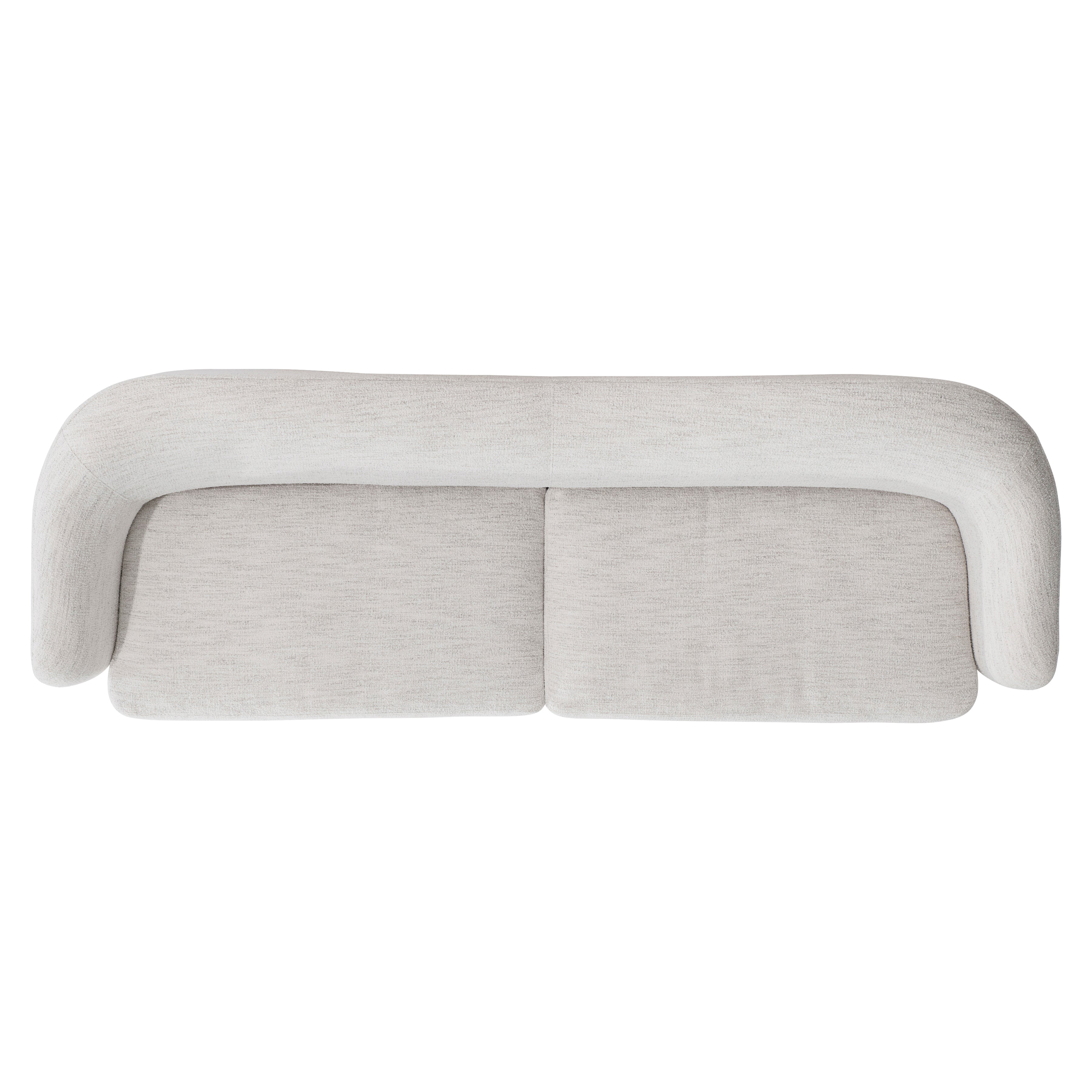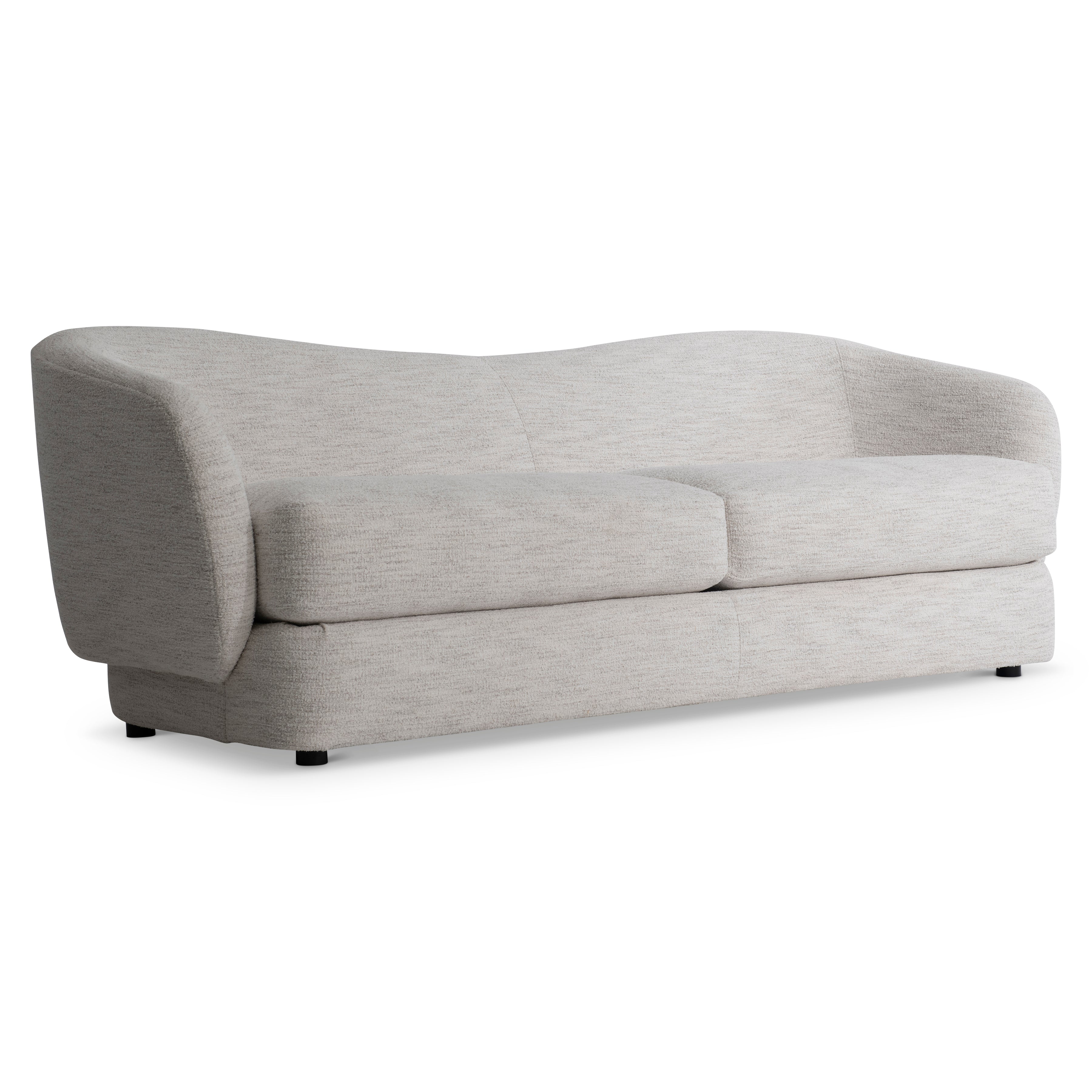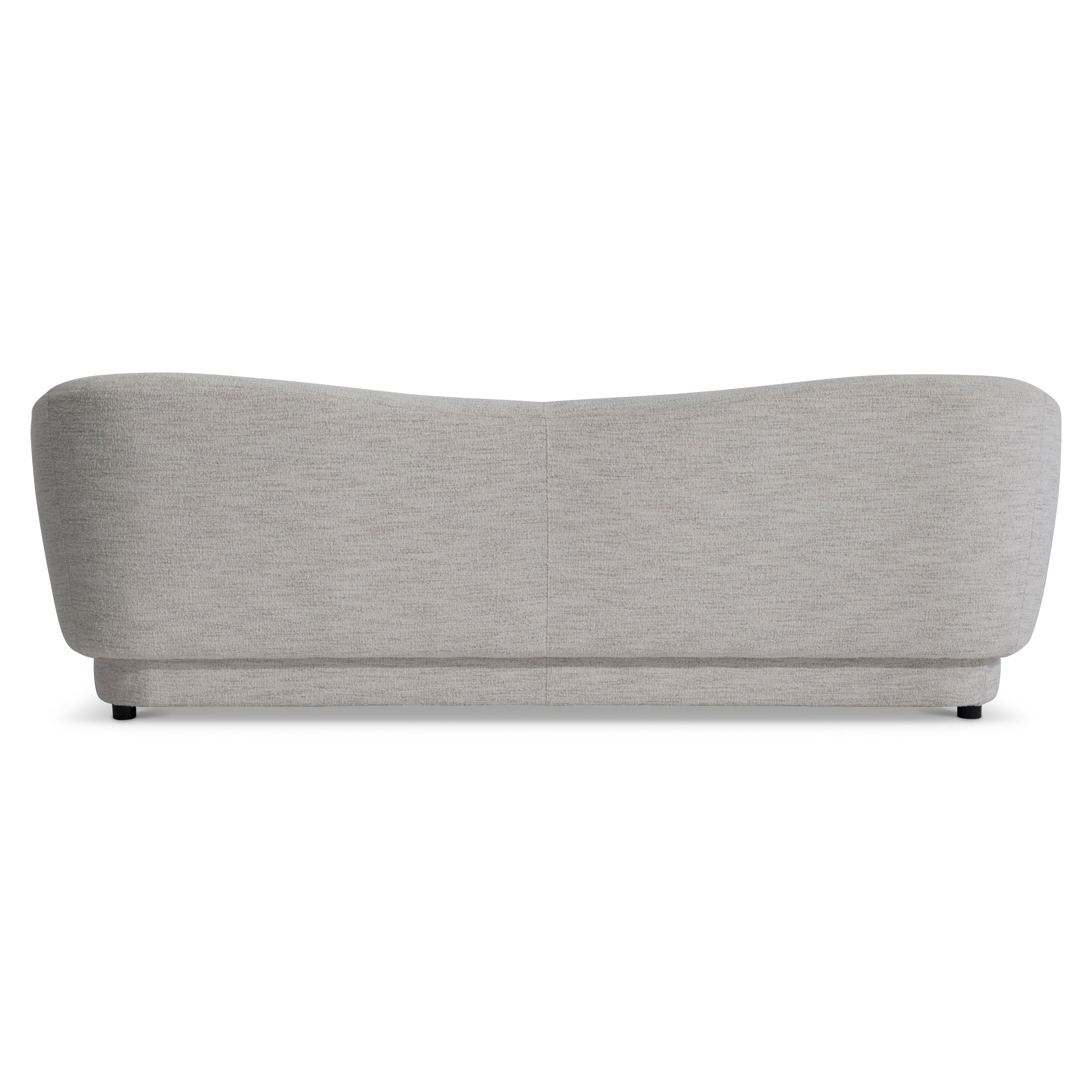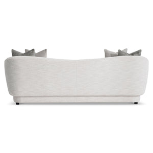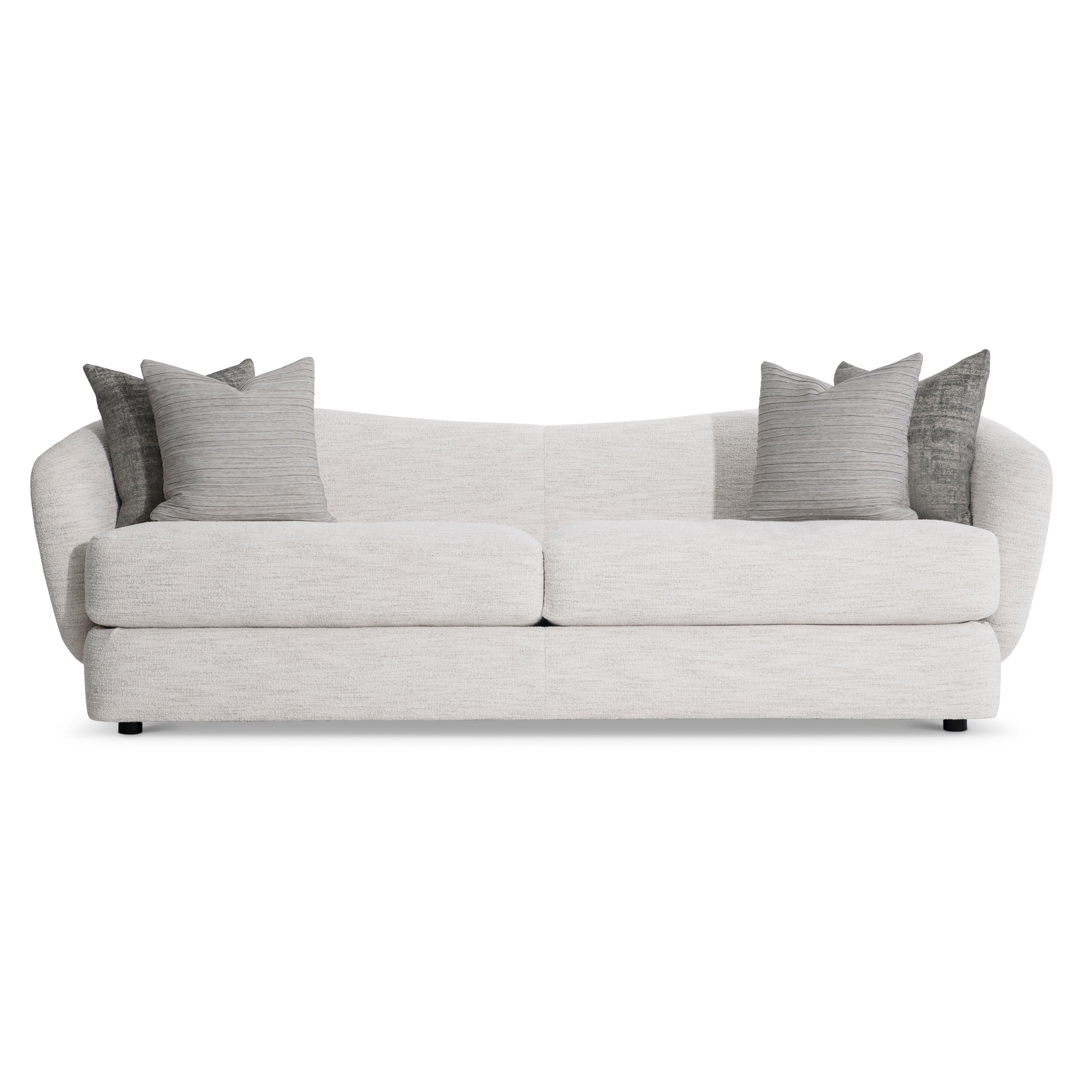 Deep seat cushions and tight backRound feetTwo complementary throw pillows