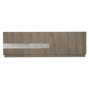 White oak veneers in Tamarind finish.Cast aluminum molding wrapped around one corner.Inset rectangular box in Jicama finish.Plinth base in Tamarind finish.Non-marring heavy-duty casters.