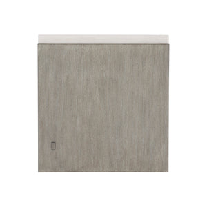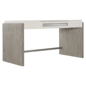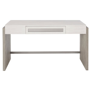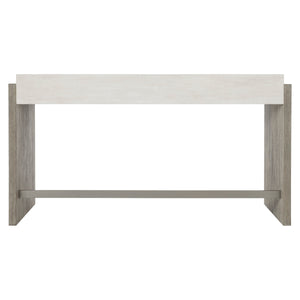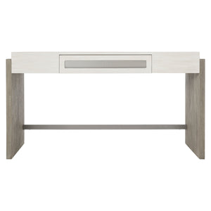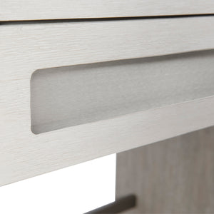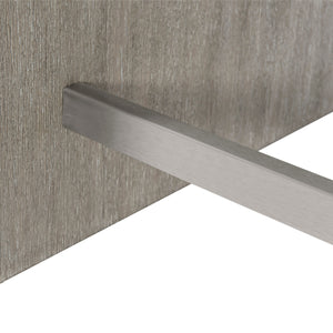 Two-tone finish - Drawer box in Linen finish and end panels in Light Shale finishOne soft-closing drawer with hand-pull with inset brushed stainless steel plateBrushed stainless steel stretcherAdjustable glidesNot designed to support TV &/or other media