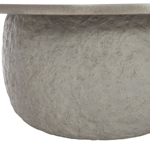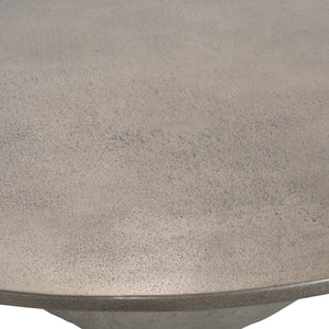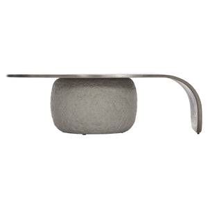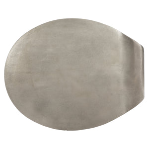 Teardrop-shaped cast aluminum top in Graphite finish.Narrow, rounded end of table top extends to the floor with a waterfall effect.Textured cast concrete base in Sand Grey finish.Adjustable glides.