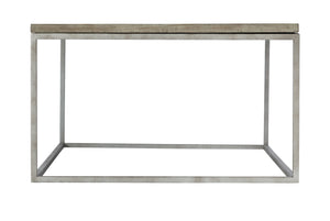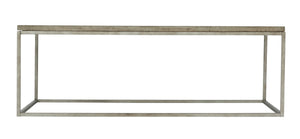 Solid planked top with overlays in herringbone pattern.Morel finish.Tubular Steel frame in Glazed Silver finish.Adjustable glides.
