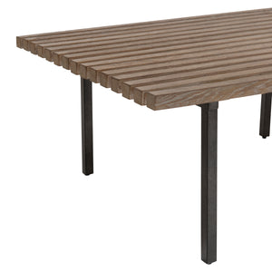 Cocktail table with slatted top in Marcona finish.Metal base in Anthracite painted metal finish.Adjustable glides.Instruction sheet included.