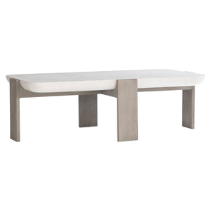 Rectangular cocktail table.Top in Sand Grey finish.Base in Flint Grey finish.Adjustable glides.