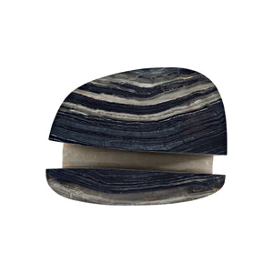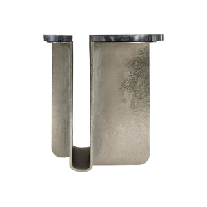 Laminated Black Forest marble top.Cast aluminum base in Shiny Nickel finish.Adjustable glides.