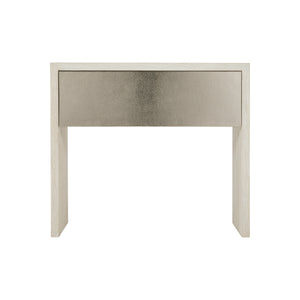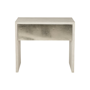 White oak veneers in Jicama finish.One push-to-open drawer with inset front panel of cast aluminum in shiny nickel finish.Adjustable glides.Anti-tip kit.Note: Not designed to support TV &/or other media.