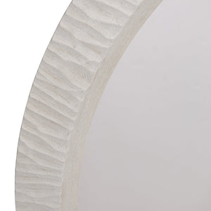 Quartered ash solidsRound mirror with chiseled cast resin frame with non-beveled mirrored glassHangers includedSpecifications subject to change without notice