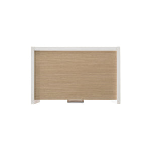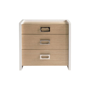Rectangular nightstand with gallery rail around back and sides. Top surface and drawers in Sahara finish. Adobe finish on end panels and gallery.Recessed bank of three soft-close drawers with metal pulls.Two-port USB charger on back of nightstand.Adjustable glides.Anti-tip kit and instruction sheet.