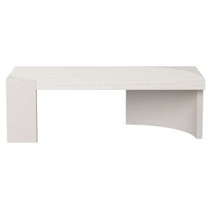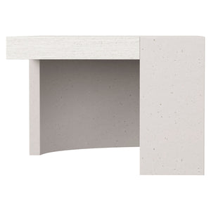 Inset wood top in Mist finish, supported by two faux stone posts on opposite corners in Fossil finishThe inside of each corner post is curvedAdjustable glidesSpecifications subject to change without notice