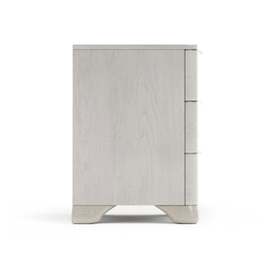 Walnut wood in Lutra finish and cast resin base in Lutra Faux Stone finishThree soft-close drawers with full-length brushed stainless steel pulls in Nickel finishTwo-port A+C USB charging unit on back of caseAdjustable glidesNot suitable for use with TV