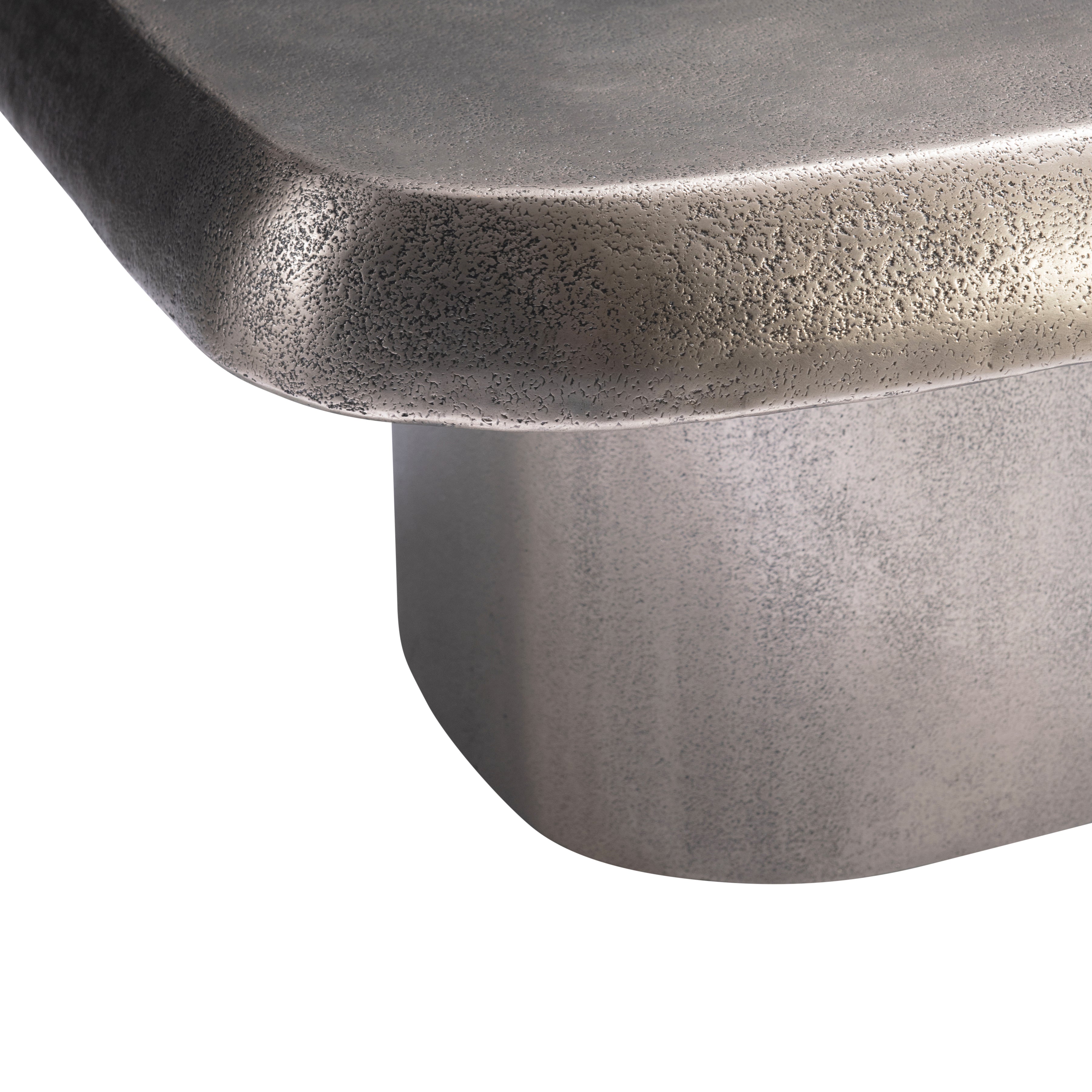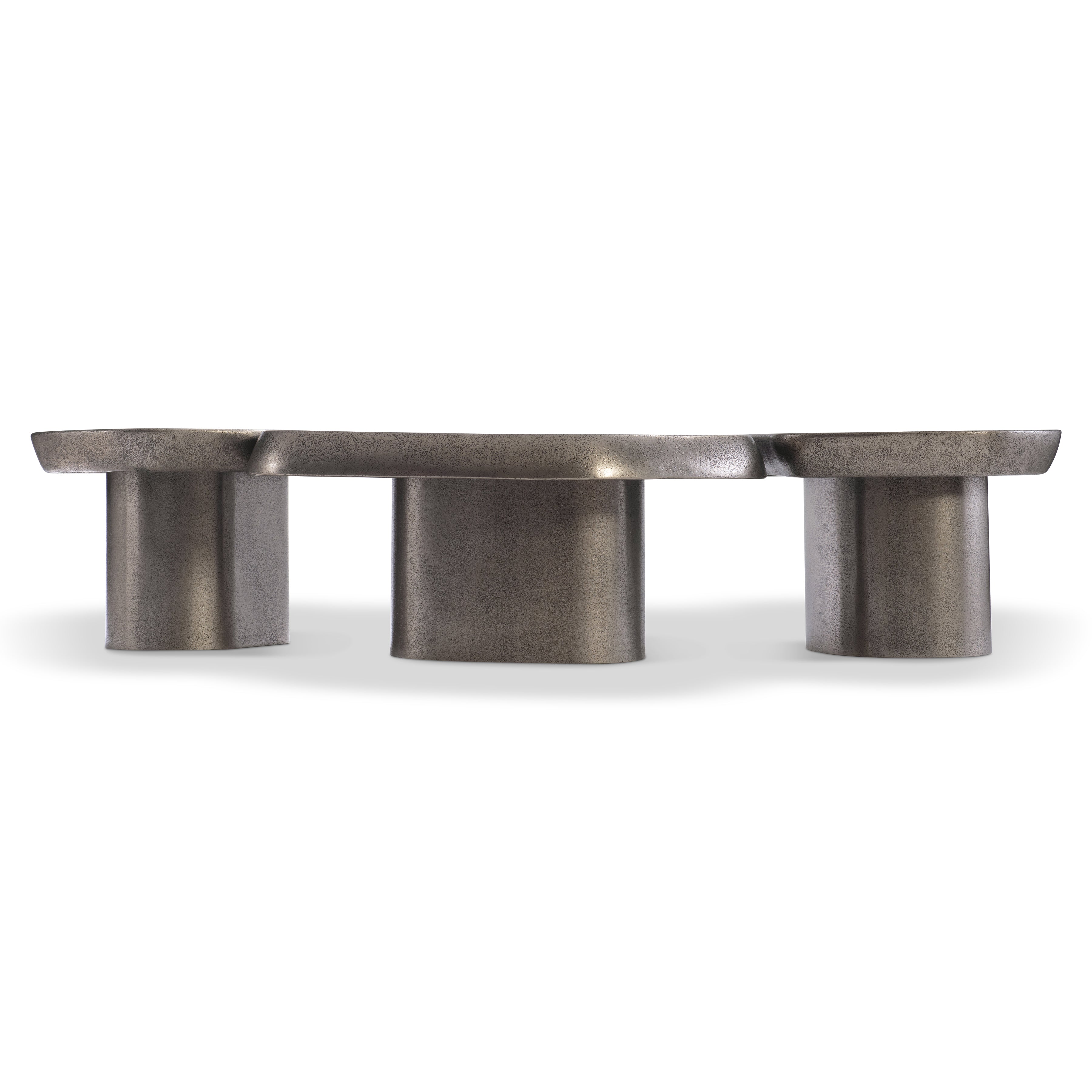 Cast aluminum in Graphite finishIrregular pentagon-shaped topLargest size in a set of three different-sized tables that collectively form a bunching cocktail tableOrder with 338014B & 338014C to complete setAlso offered for purchase separatelyAdjustable glidesSpecifications subject to change without notice