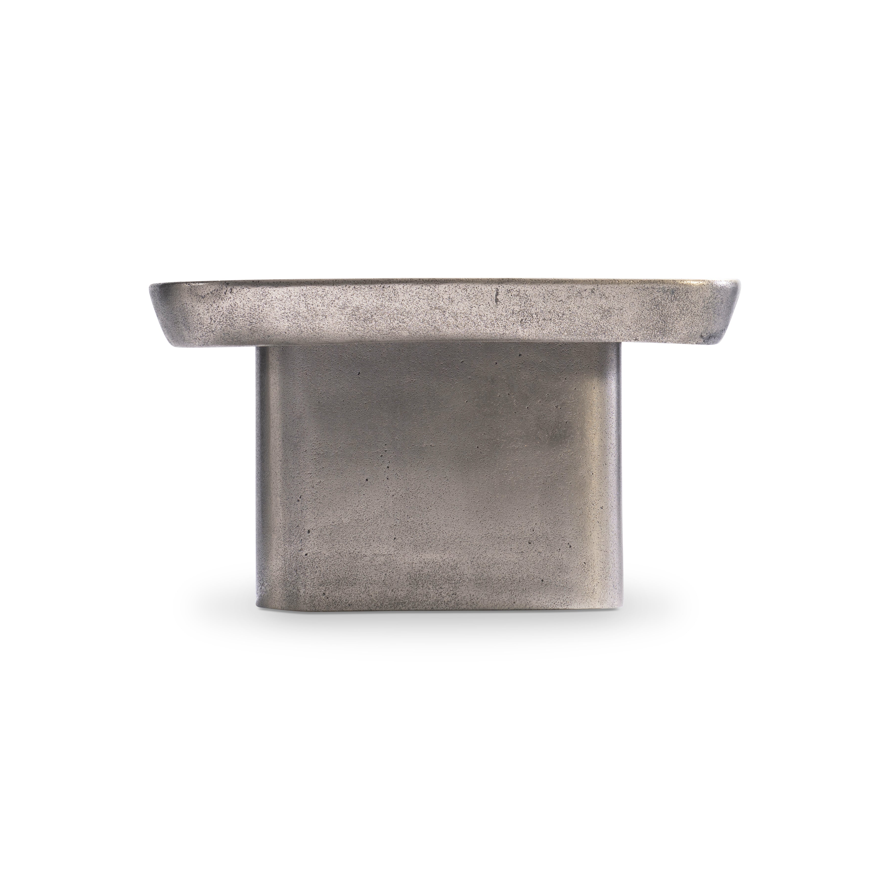 Cast aluminum in Graphite finishIrregular pentagon-shaped table topMedium size in a set of three different-sized tables that collectively form a bunching cocktail tableOrder with 338014A & 338014C to complete setAlso offered for purchase separatelyAdjustable glidesSpecifications subject to change without notice