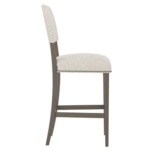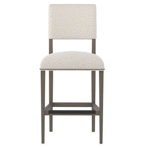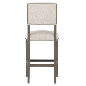 Upholstered inside and outside back with welt.Upholstered seat with welt and nailhead trim.Non-wire-brushed exposed wood frame and stretchers.Powder-coated Black finish on Steel kick plate on front stretcher.