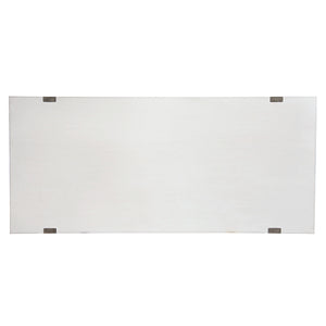 Oak solids and maple veneers.White Plaster finish on top.Rustic Grey finish on base.Adjustable glides.