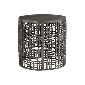 Cast aluminum side table.Solid top.Open geometric patterned sides.Graphite finish.
