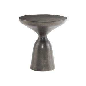 Round accent table.Cast aluminum.Matte�Graphite finish.Note:�Felt bottom to protect floor surfaces.