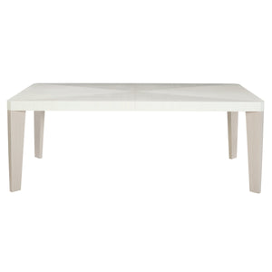 Poplar solids and engineered faux anigre veneers.Fancy face top in�Linear White finish.Two 20' leaves - not fancy face.Linear Gray finish on legs.Adjustable glides.