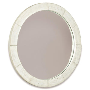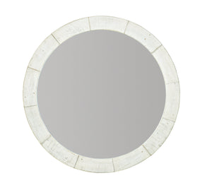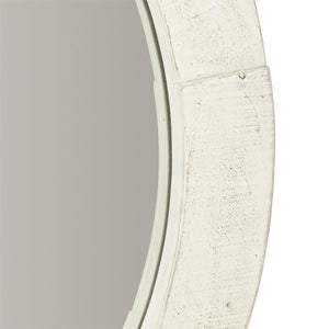 Planked frame of varying thickness in Brushed White finish.Non-beveled mirrored glass.Due to weight, must be hung on stud.
