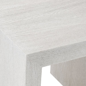 Rectangular side table.Sandblasted Ash veneers.Sandblasted White finish.Adjustable glides.