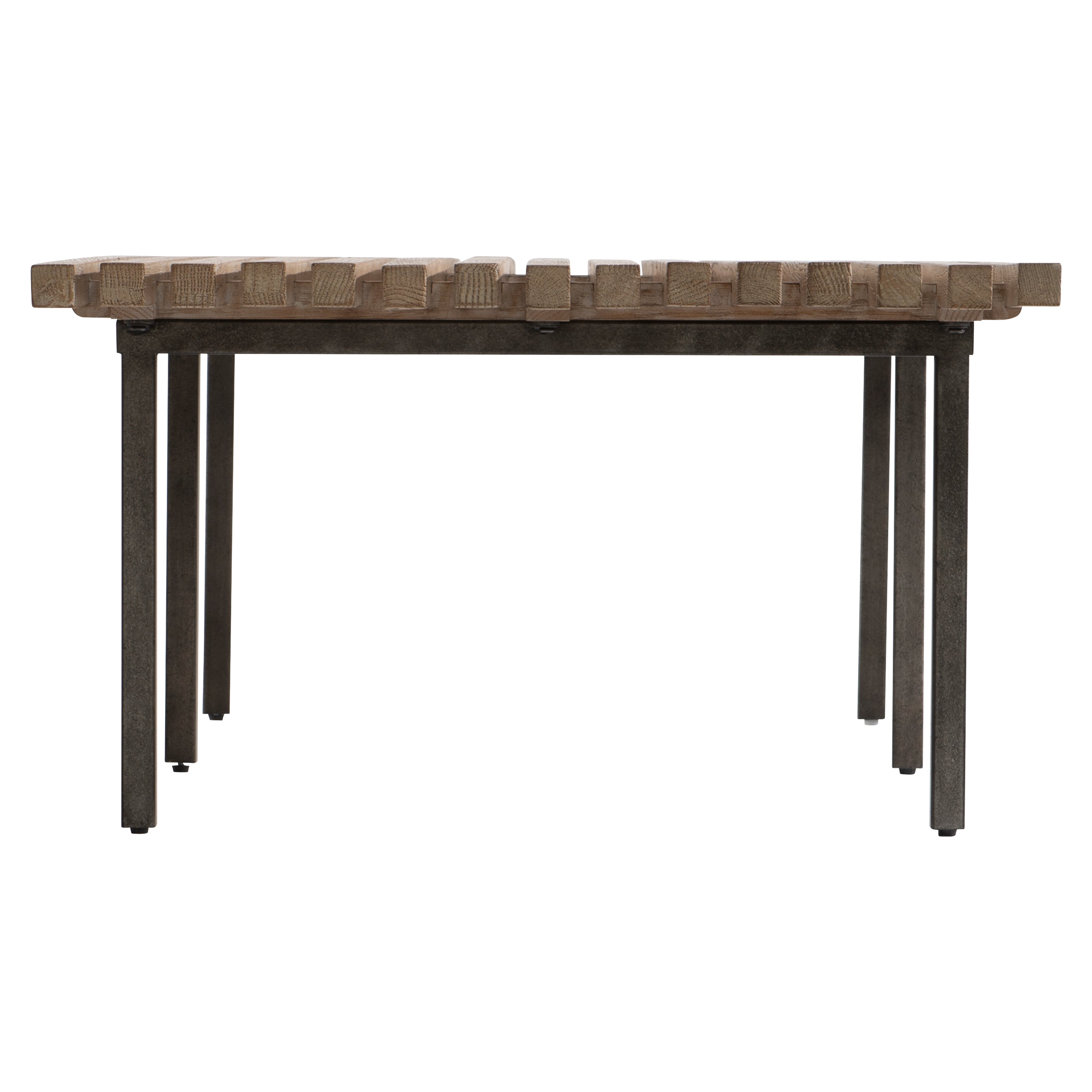 Cocktail table with slatted top in Marcona finish.Metal base in Anthracite painted metal finish.Adjustable glides.Instruction sheet included.