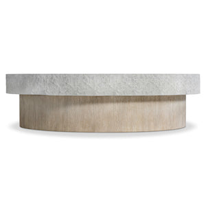 Wirebrushed oak base in Trevin finish, supporting smooth faux stone smooth top and textured edges in Millstone finishHeavy-duty castersSpecifications subject to change without notice