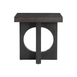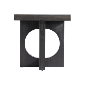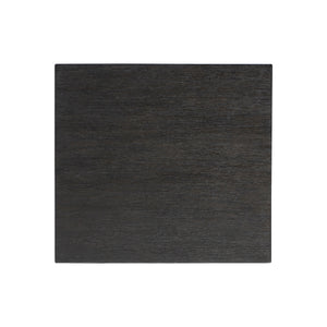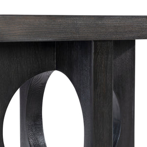 Wire-brushed quartered white oak in Black Truffle finishFour intersecting support panels, all with a semi-circular cutout at the center where the panels meetAdjustable glides
