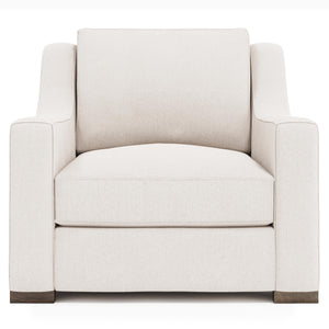 With sloped arms and thick cushioning, the Germain chair offers luxurious support in a clean, transitional design. Sinuous spring construction and spring down cushions offer unprecedented comfort. Subtle and sophisticated, the welting highlights the fine quality of the upholstery. Blendown throw pillows add a finishing touch.