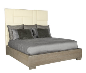 Upholstered headboard with pattern of multi-level panels.Wood footboard, side rails and feet in Dark Taupe finish.Three slat support system with adjustable center supports.Note: Headboard cannot be used alone.Must be ordered with footboard/side rails.