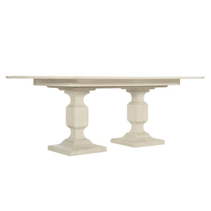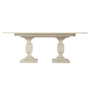 Rectangular dining table.Cerused Linen finish.Two 20' leaves.Adjustable glides.