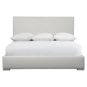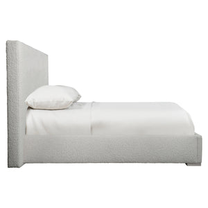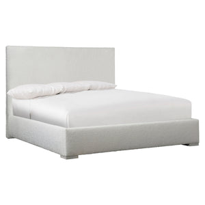 Fully upholstered headboard in B582 fabricFully upholstered footboard and side railsExposed ash wood feet in Weathered Bone finishStandard with five wood slats with adjustable double center support legsSpecifications subject to change without notice