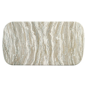 Faux stone top in Kalta finish, supported by four uniquely positioned cast resin legs with woodgrain texture in Clay finishRobust, shaped table legsOne 24" leafAdjustable glidesSpecifications subject to change without notice