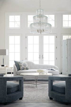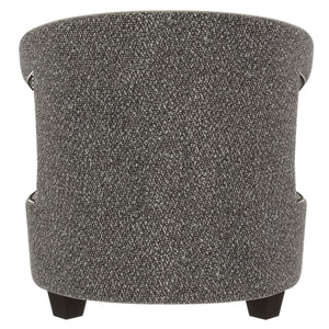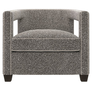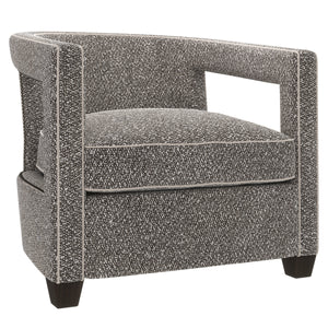 The sleek, sculptural design of the Alana chair adds modern flair to an interior, blending seamlessly with contemporary and transitional styles. Two cutouts on either side are lined with nailhead trim for a crisp, polished look. Webbing construction and spring down cushioning provide luxurious comfort and support.