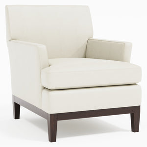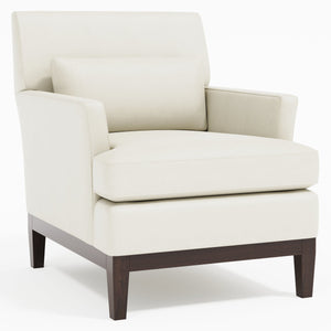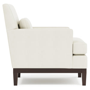 The Cumberland chair offers luxurious comfort in a transitional style. Clean, horizontal lines, flared arms, sumptuous leather and tapered legs on the exposed wood frame draw inspiration from midcentury modern design. The expansive seat features sinuous spring construction and a luxe down cushion, delivering the highest level of comfort.
