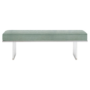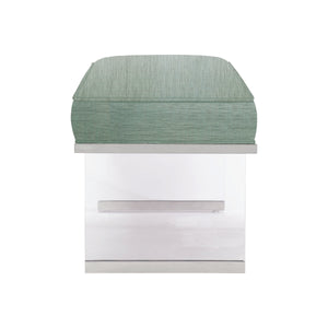 Modern sleek shaped bench.Comfortable upholstered seat.Acrylic base with stainless steel accents.
