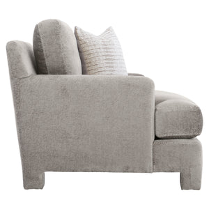 One Fiber back pillow-box edge weltless with special contrast stitching.One Plush Feather Down seat cushion.Sinuous spring.One Blendown throw pillow-knife edge weltless-18"x18"